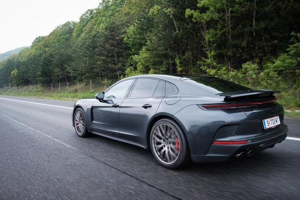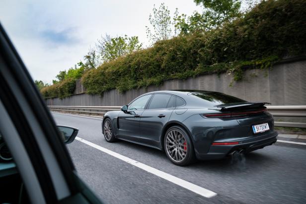 Seinen Erfolg mit der Marke spielt er bei unserer gemeinsamen Ausfahrt mit dem nagelneuen Panamera charmant hinunter. Die Neuauflage des Modells wurde extra für unsere Ausfahrt nach Wien gebracht – eine Premiere auch für Eggert. „Für mich ist der Panamera das Schweizer Messer in der Flotte: der geht als Reisefahrzeug genauso, wie als Familienauto und auf der Rennstrecke.“ Das überarbeitete Modell, ein Plug-in-Hybrid, ist stärker und schneller als je zuvor. Vor allem aber mit dem neuen Active Ride Fahrwerk ausgestattet, das praktisch jegliches Wanken, Nicken und Sinken während der Fahrt eliminiert.